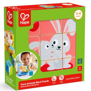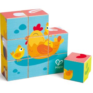 Puzzle din lemn cuburi – Animale de ferma 3 x 3