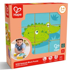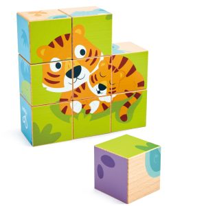 Puzzle din lemn cuburi – Animale salbatice 3 x 3