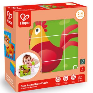 Puzzle din lemn cuburi – Animale de la ferma 3 x 3