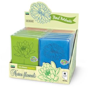 Notebook Floral, cu inchidere magnetica, 13 × 18 cm cu coperta PU, 3 modele asortate (12 buc/display)