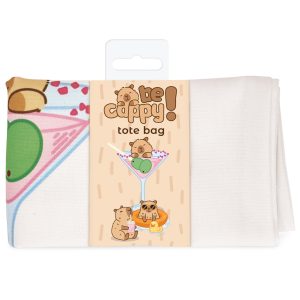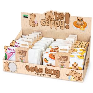 Sacosa textila canvas BeCappy Capibara – cu imprimeu pe ambele fete, 4 modele asortate (12 buc/display)