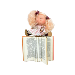 Papusa Nines D’Onil, Mia, cu parul blond si funde rosii, cu articulatii, cu miros de vanilie, 30 cm