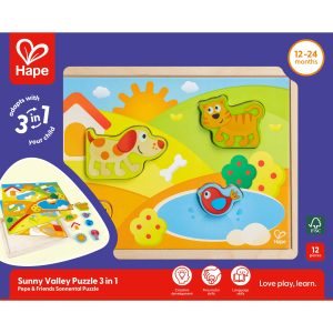 Puzzle din lemn 3 in 1 – Pepe si prietenii