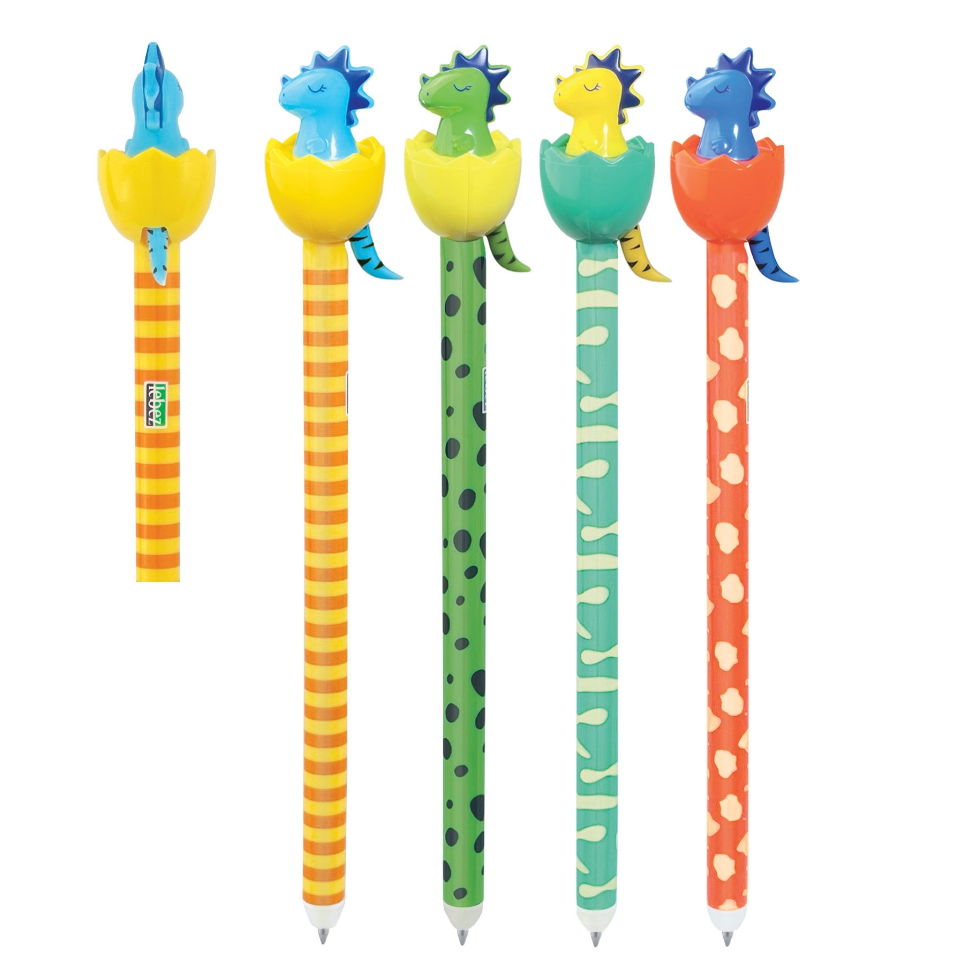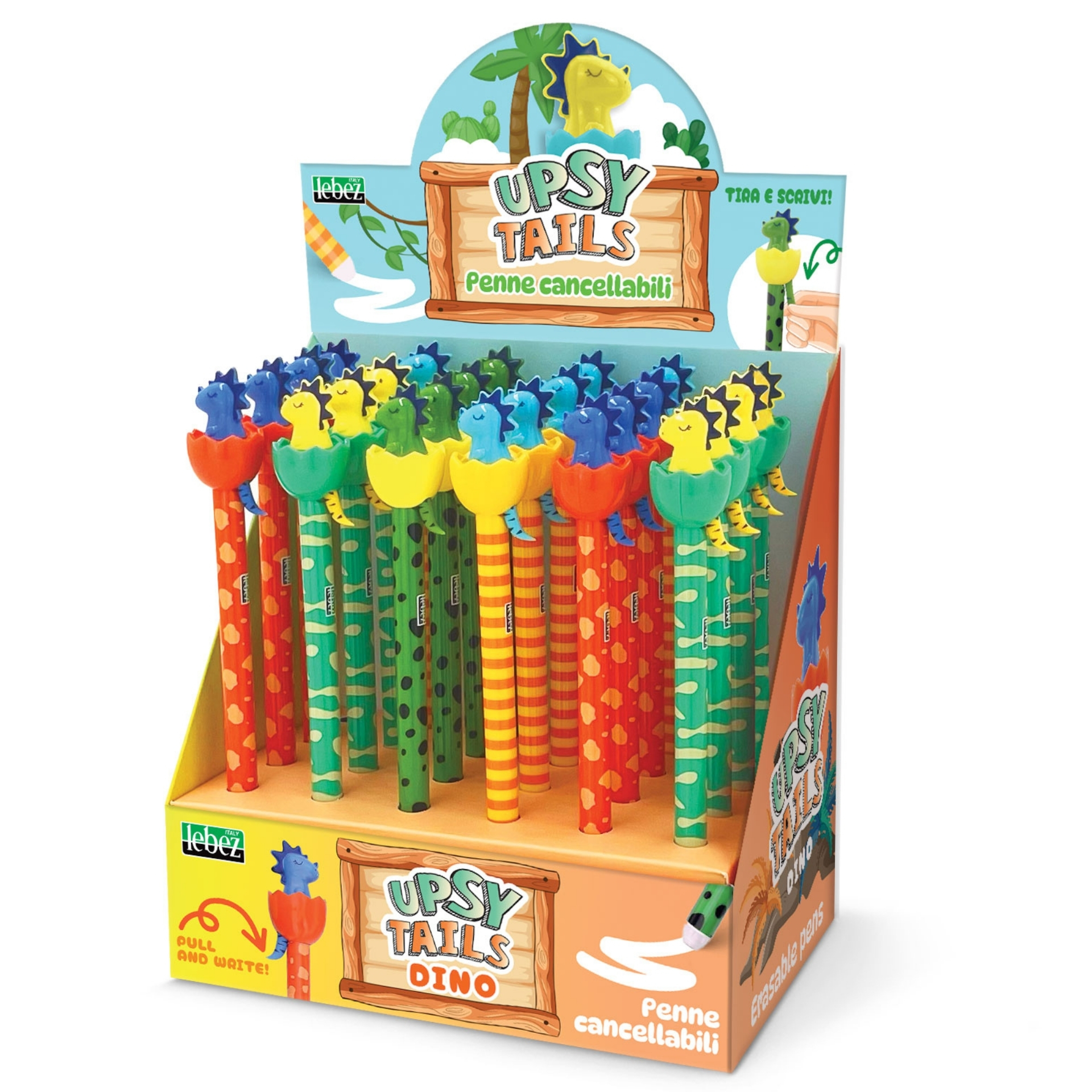 Pix cu cerneala albastra care se sterge, cu mecanism snap si radiera integrata in varf. Model Upsy Tales Dino, disponibil in 4 modele asortate. Coada din silicon de pe partea din spate actioneaza varful: trage coada pentru a scoate mina. Ambalat in display cu 24 de bucati, cu dimensiuni 16.5 × 26.5 × 10 cm.