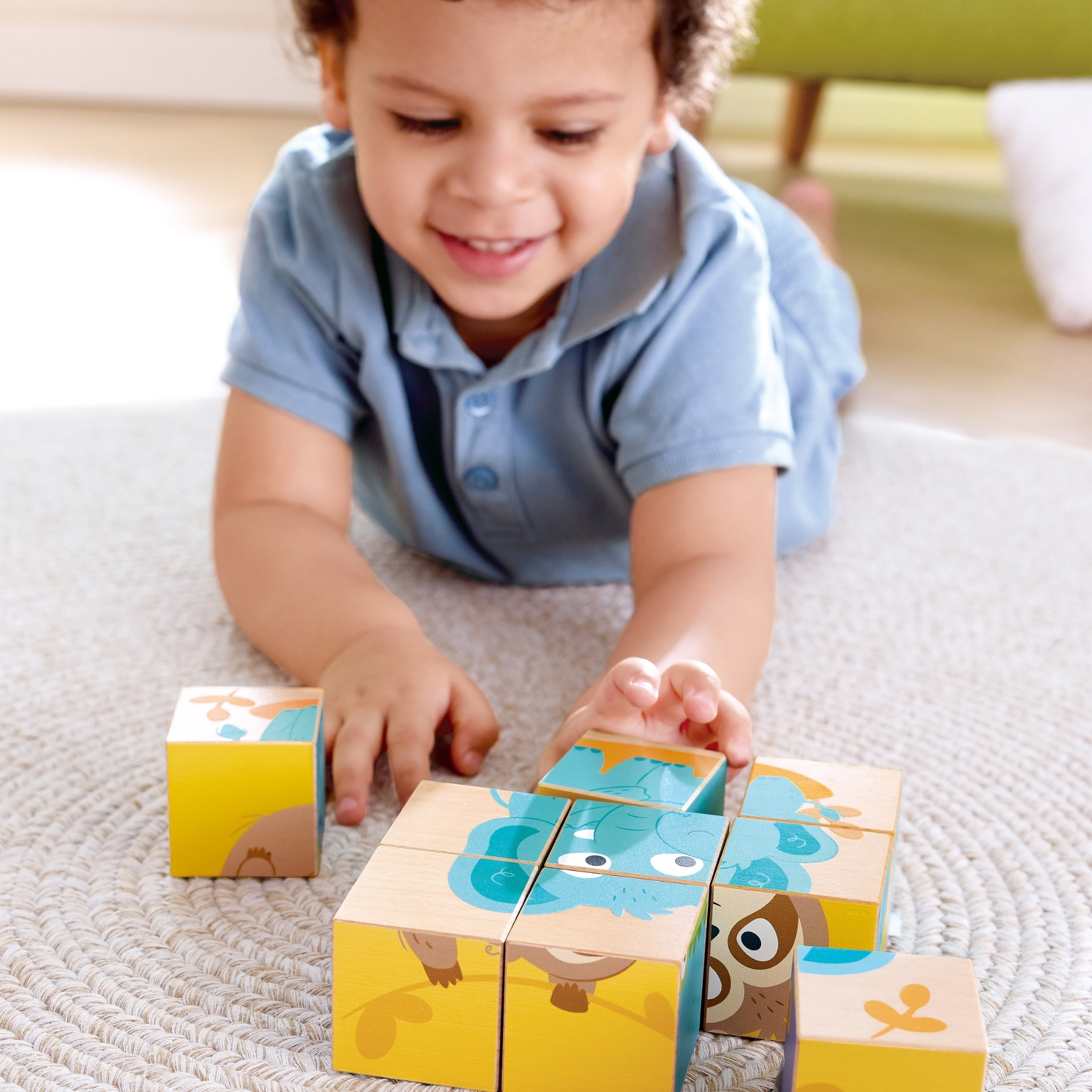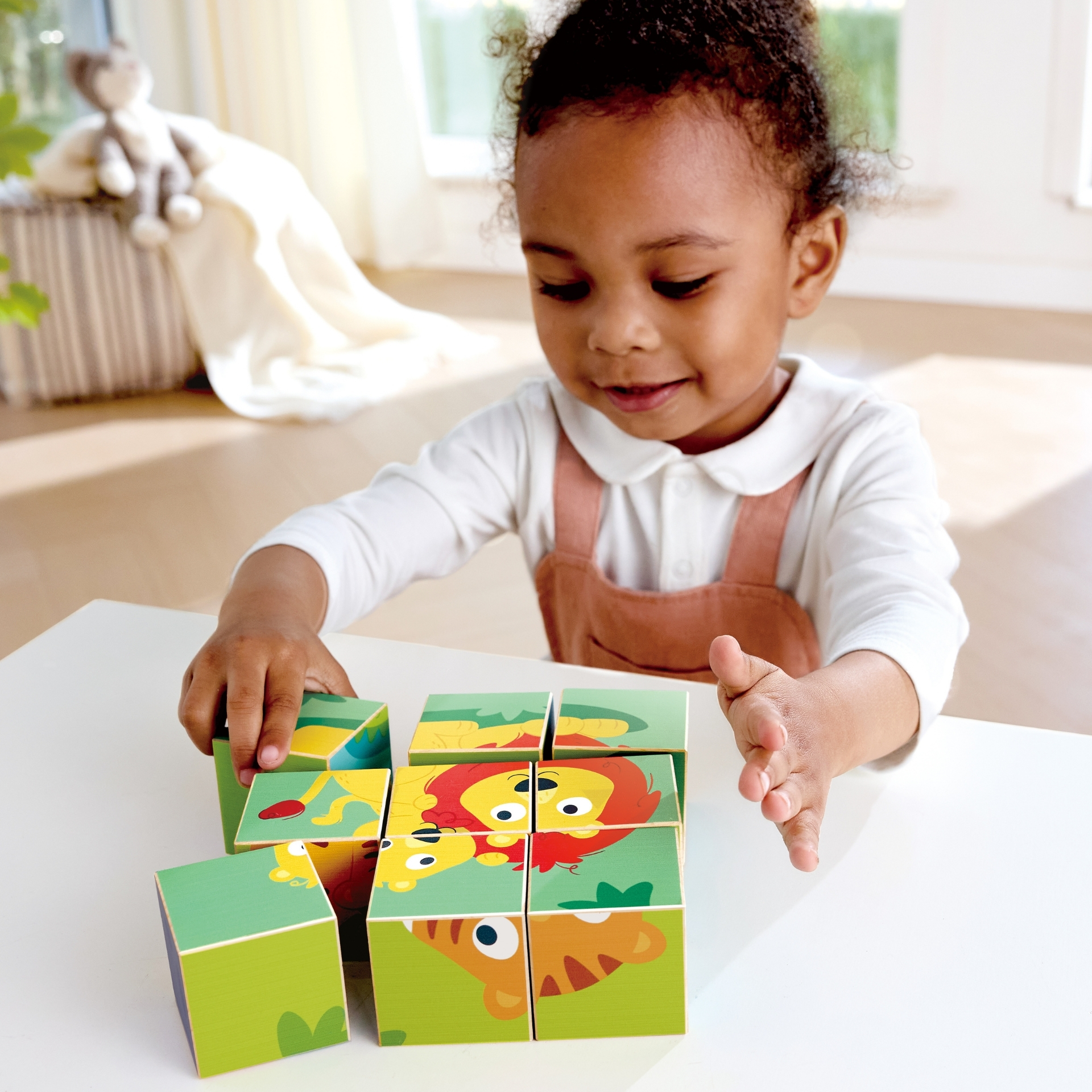 Puzzle-ul poate fi folosit in mai multe moduri, incurajand creativitatea si gandirea logica. Cei mici pot aseza cele noua piese pe podea pentru a forma imagini complete, pot construi vertical sau pot crea turnuri si structuri originale in timpul jocului liber. Fiecare fata a blocurilor dezvaluie o alta imagine, oferind copiilor sase puzzle-uri diferite intr-un singur set.