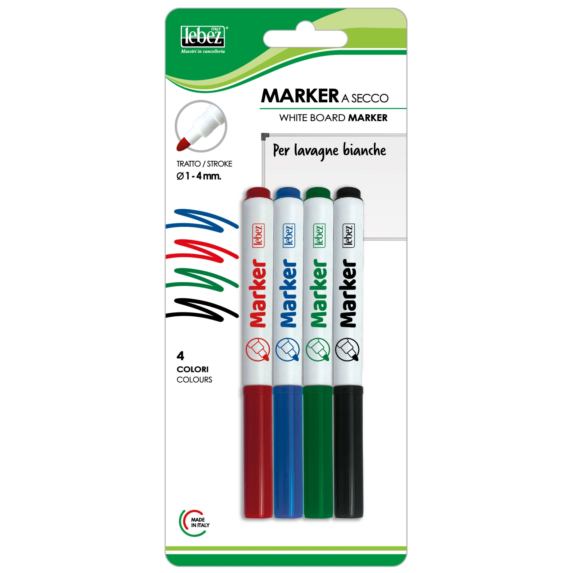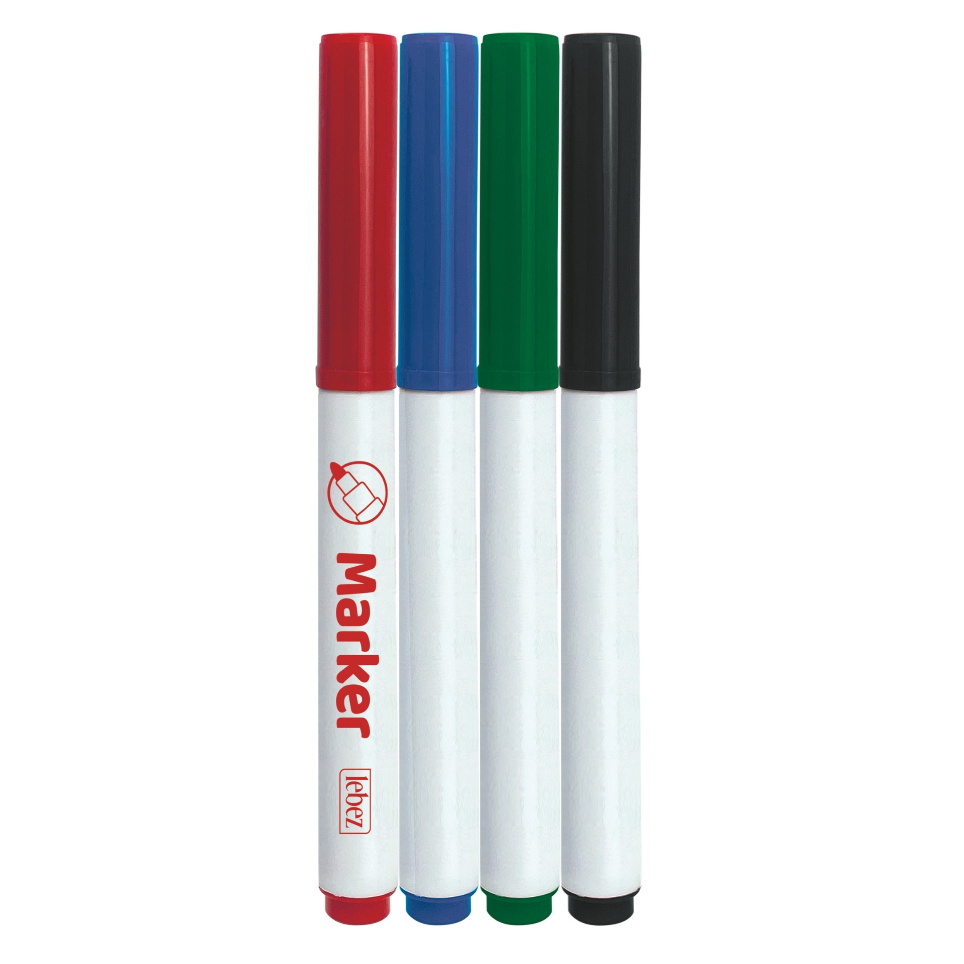 Set de 4 markere pentru tabla alba, cu stergere la uscat, disponibile in 4 culori. Grosime de scriere 1–4 mm, potrivite pentru utilizare zilnica la scoala, birou sau prezentari. Ambalate in blister cu dimensiuni 10 × 23 cm.