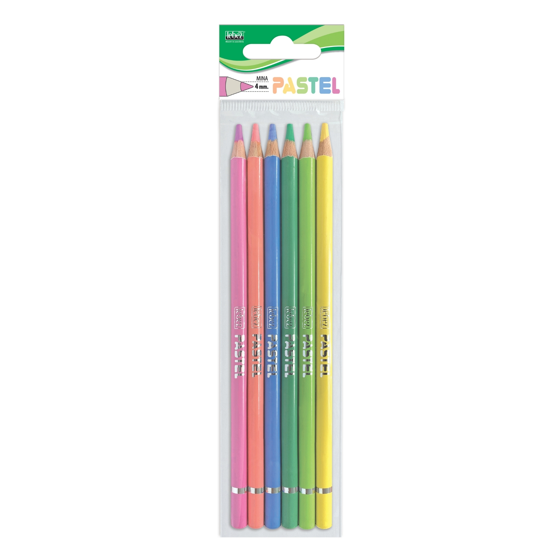 Set de 6 creioane colorate in nuante Pastel, cu fusta rotunda de ø 8 mm si mina groasa de ø 4 mm. Creioanele au finisaje argintii si sunt ambalate in punga cu agatoare cu dimensiuni 5 × 21.5 cm. Ideale pentru desen, colorat si activitati creative.