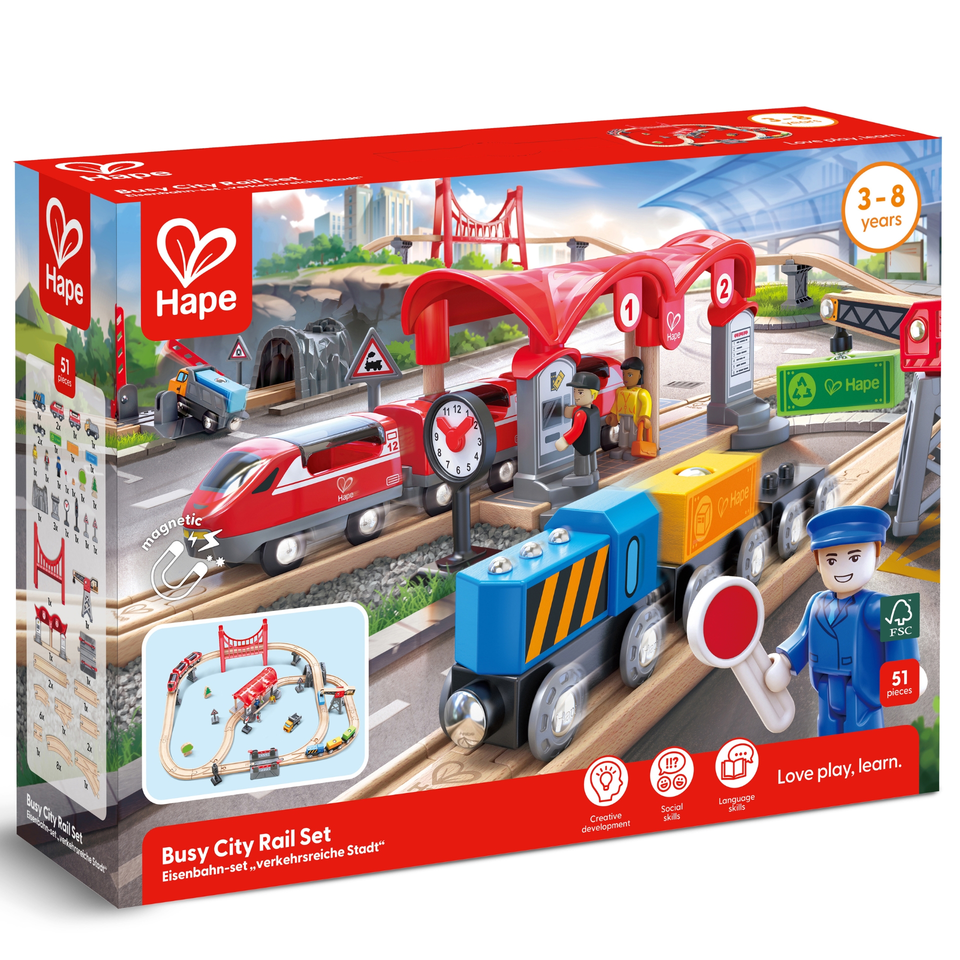 Set de cale ferata cu dubla bucla cu tematica orasului, excelent pentru a-i invata pe copii cum functioneaza orasul. Copiii isi pot crea propriile orase unice si isi pot explora si laturile creative fara sfarsit.