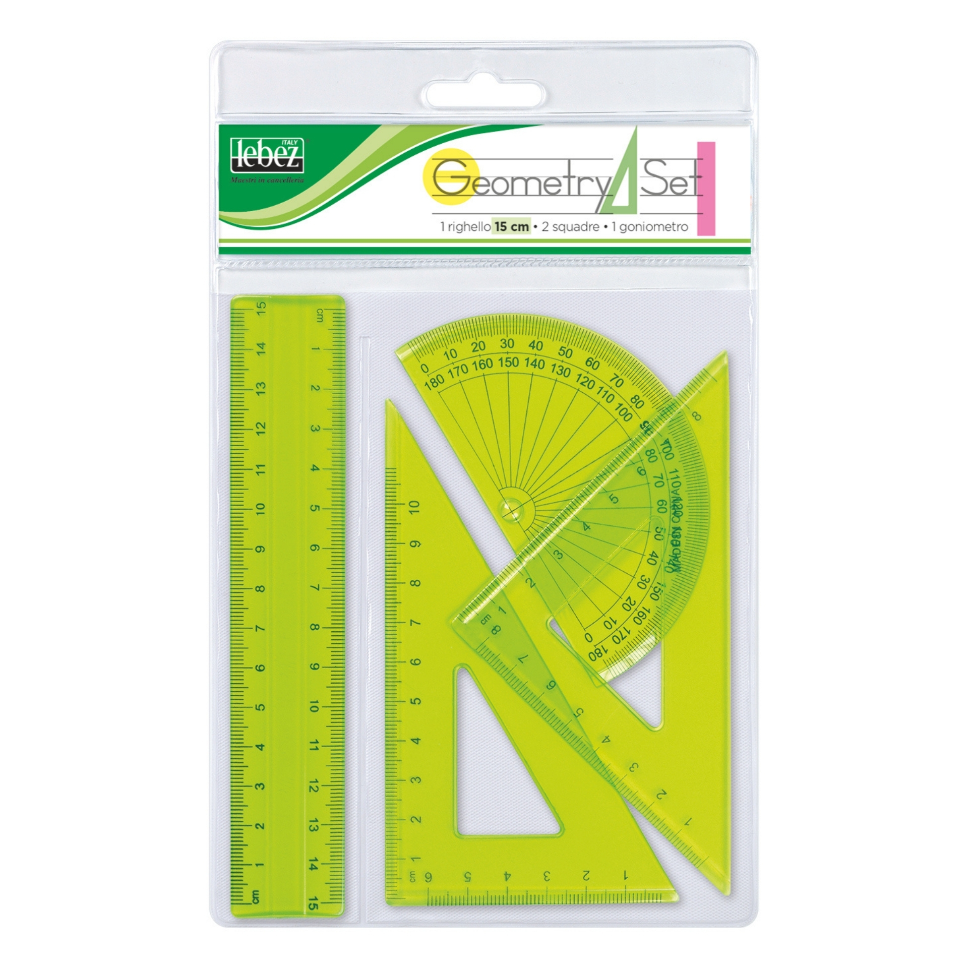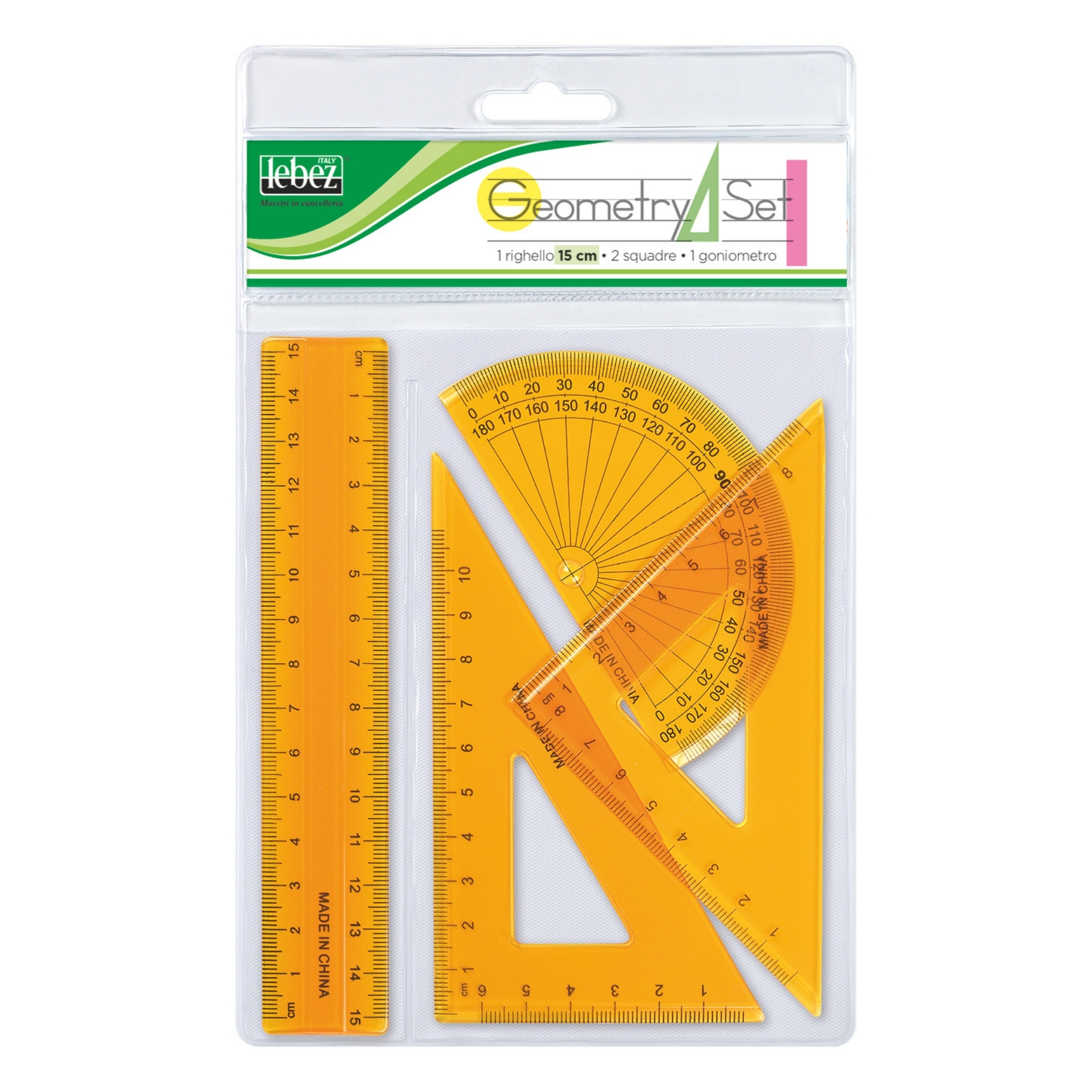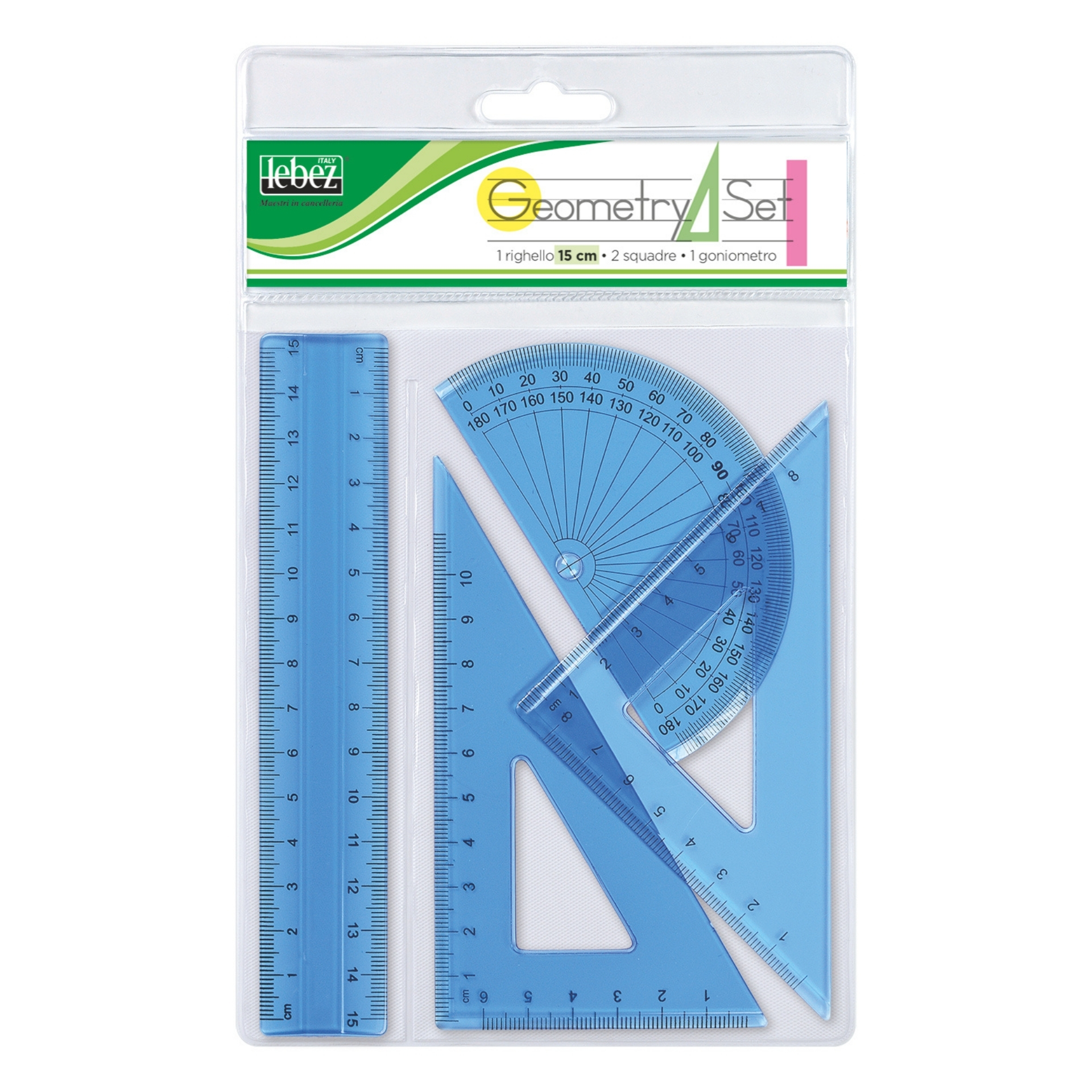 Set din plastic transparent format din 4 piese, ideal pentru activitati scolare, proiecte creative sau desen tehnic. Include rigla de 15 cm si alte sabloane utile pentru trasare precisa a formelor si liniilor. Materialul transparent permite pozitionare si aliniere usoara pe orice tip de suport.