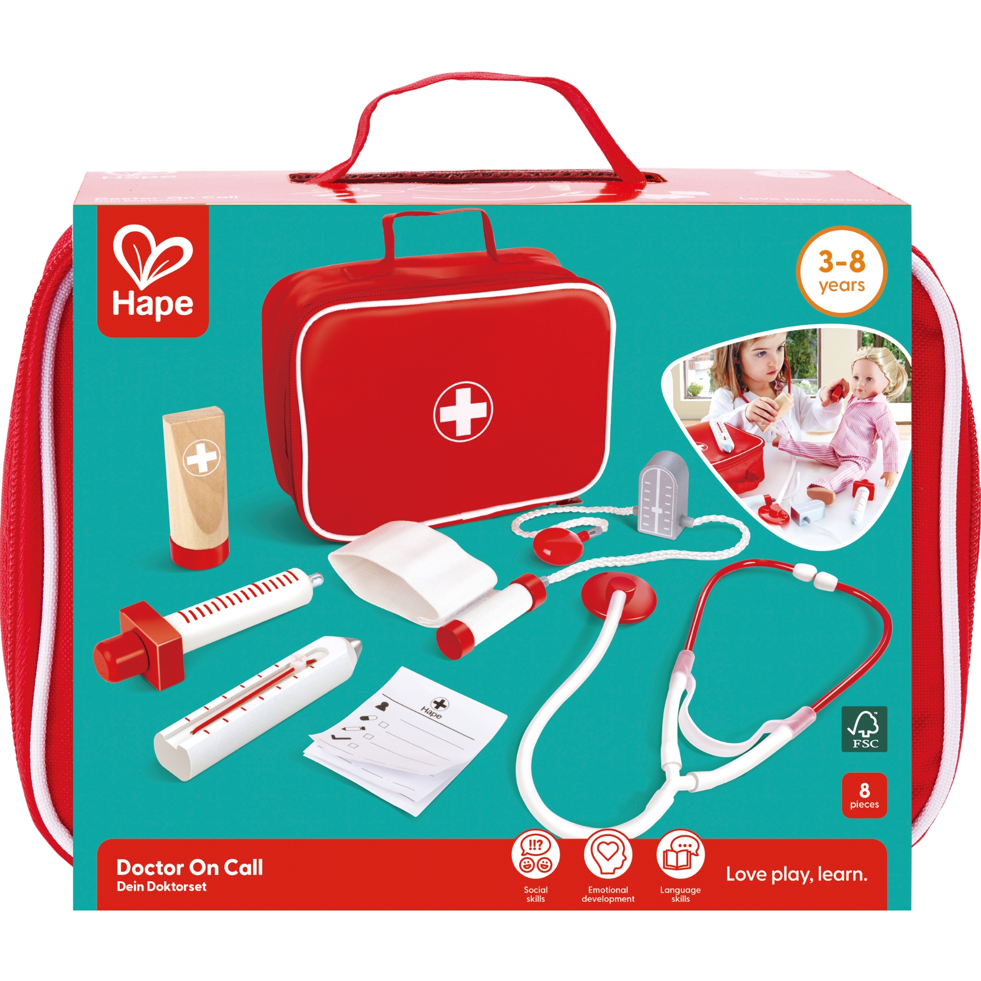 Pastreaza-ti prietenii fericiti si sanatosi cu aceasta trusa medicala bine echipata. Familarizarea copilului cu domeniul medicinei ii usureaza vizitele la medicul adevarat. Incurajeaza copiii in jocul de rol imaginativ si povestirea. Este non-toxic, sigur pentru copii si de cea mai inalta calitate. Designul si stilul clasic sunt perfecte pentru mica asistenta, medic, veterinar sau asistent al medicului din viata ta!
